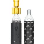 - Zestaw zawiera 1 głowicę pompki, 2 naboje CO2 i 1 rękaw ochronny